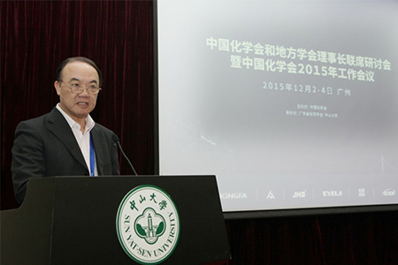 2015年12月2-4日,中国化学会2015年度工作会议在广州市中山大学举办,本次会议由广东省化学学会和中山大学承办,中国化学会理事长班子和28个地方化学/化学化工学会的理事长/副理事长和秘书长,以及来自中国化学会21个分支机构的代表参加了本次会议。